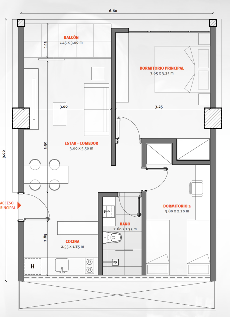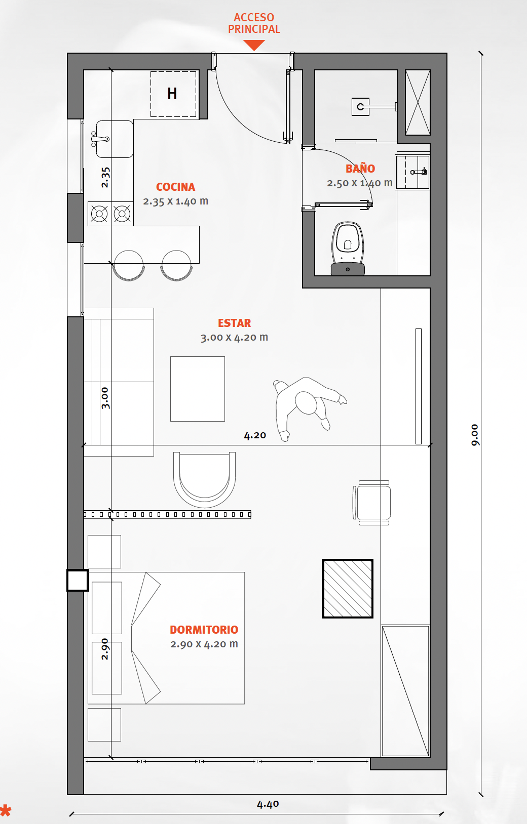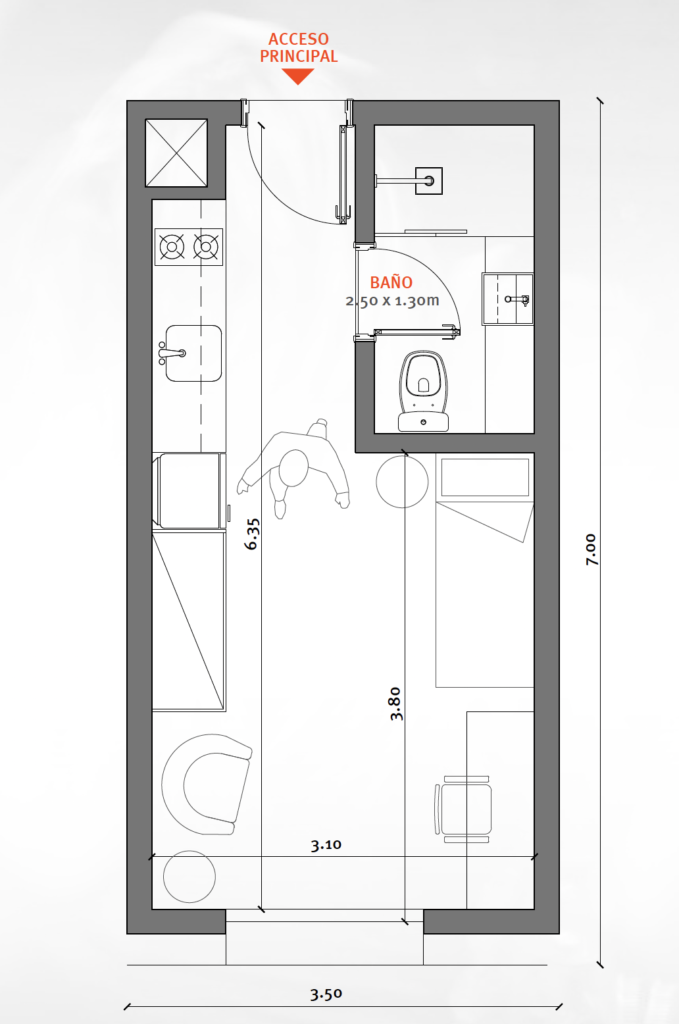 Espacio diseñado para estudiantes, profesionales jóvenes y nómadas digitales. Para una vida en pareja.