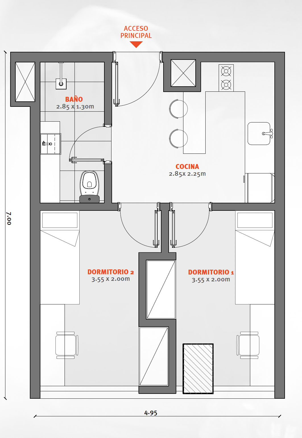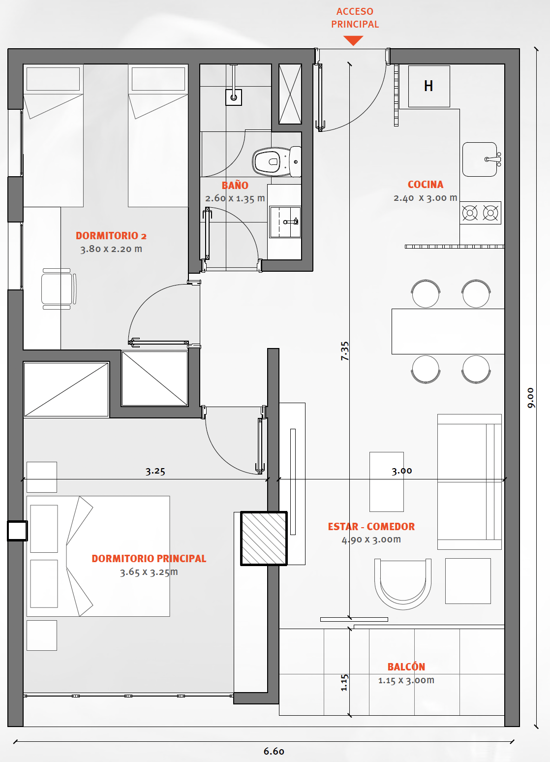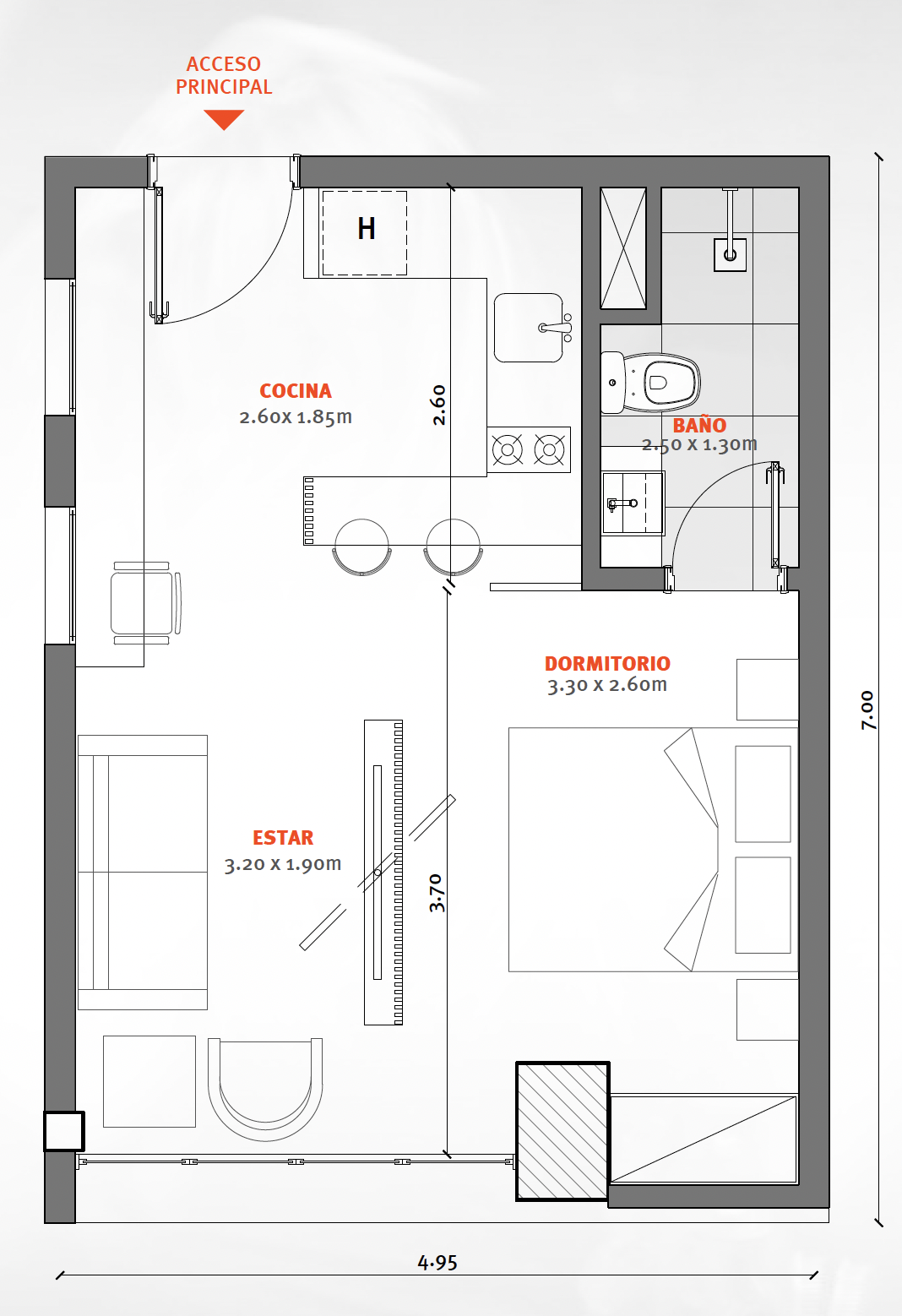 Espacio diseñado para estudiantes, profesionales jóvenes y nómadas digitales. Para una vida en pareja.